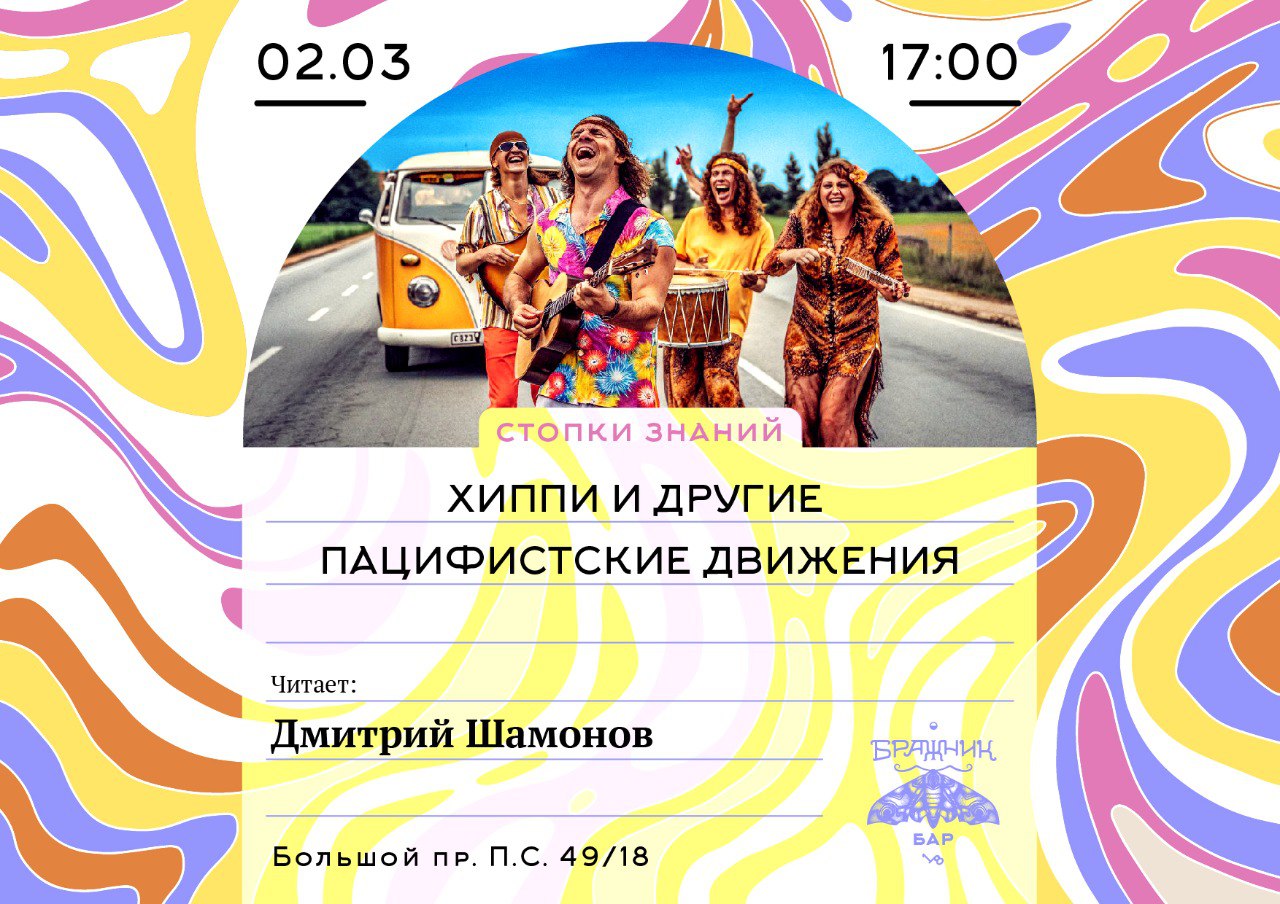Как же складывалась история хиппи и других общественных движений и организаций, ратующих за мирное урегулирование различных политических, гражданских и экономических противоречий на протяжении человеческой истории и к каким результатам они приводили? Об этом и не только поговорим на лекции культуролога, специалиста в области западных культур Дмитрия Шамонова.